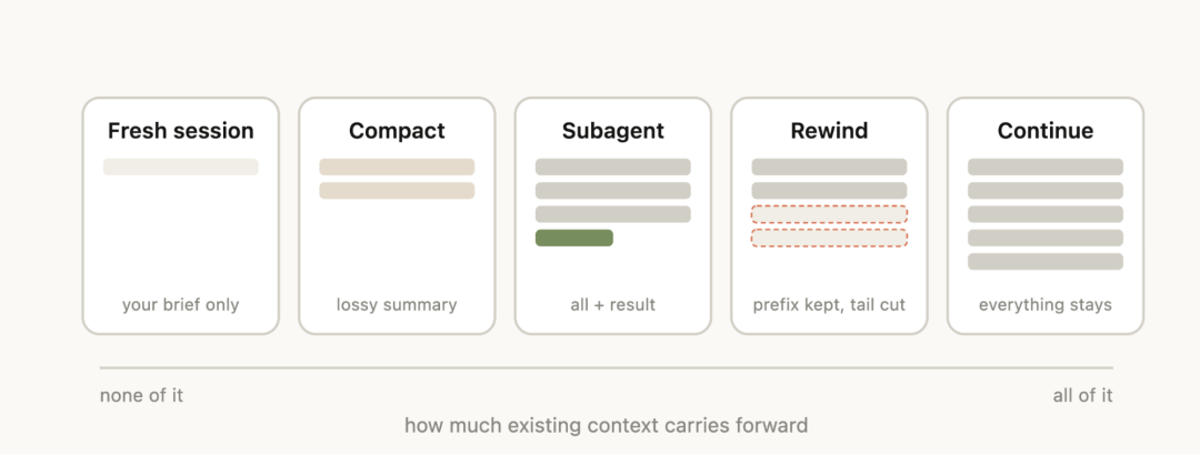 虽然最自然的做法就是继续下去,但另外四个选项可用于帮助你管理上下文。