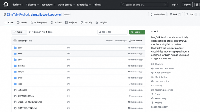 十天后,这套CLI能力正式开始开源,开发者和AI Agent无需了解底层API细节,只需一条命令即可调用企业级功能。目前,钉钉的CLI开源项目已发布在GitHub上,搜索“dingtalk-workspace-cli”即可访问,开发者和企业可以从项目README文档加入官方社群,参与功能共创。
