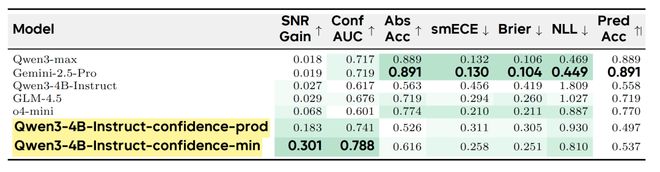 表2:显示了SNR Gain和Conf AUC两个关键指标上的领先优势。