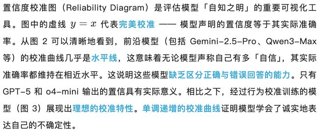 图3则显示了本研究提出的模型在校准后显著提高的表现,准确率与声明的置信度呈现正相关关系。