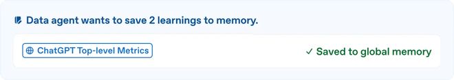 最关键的学习进化层让智能体具备持久记忆功能。当它从用户那里获得纠正信息或者发现了数据问题的细微差别时,能够保存这些经验供日后使用。记忆可以由用户手动创建和编辑,并适用于全局或特定使用者。