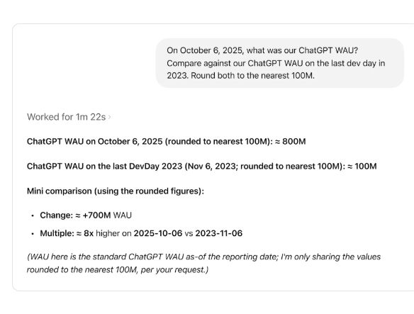 现在有了由Codex驱动且具备自主学习能力的智能体,工程师不再需要编写上百行的SQL查询,只需提问就能从数据海洋中找到所需的信息。例如下图中的查询需求是对比两个时间点的活跃用户数。