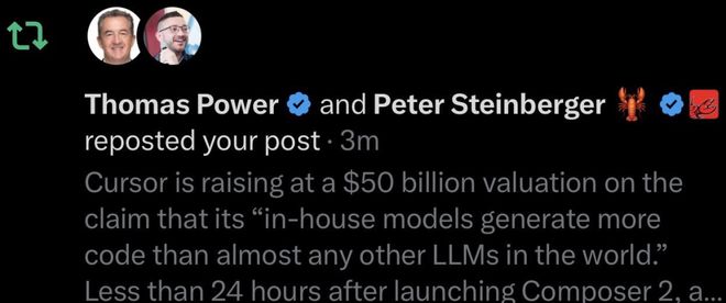 Composer 2的技术含量不假。但这件事真正的看点,不在Cursor做了多少RL,而在于——当它需要一个最强底座的时候,选了谁。