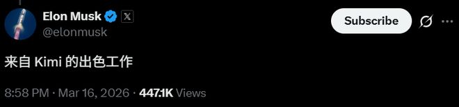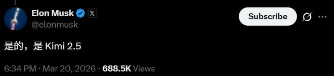 马斯克也在评论区留下了一句话:「Yeah, it's Kimi 2.5」。