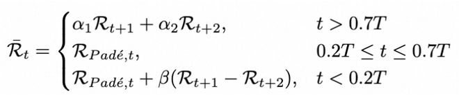扩散模型在不同采样阶段的动态特性并不相同:早期阶段,噪声高,结构变化剧烈;中期阶段,整体结构逐渐稳定,适合进行轨迹预测;后期阶段,主要进行细节修复与纹理优化。现有方法通常采用统一策略处理整个去噪过程,难以适应不同阶段的变化特点。为此,TC-Padé 提出了一种去噪步感知(step-aware)预测策略,针对不同阶段采用不同的残差更新方式: