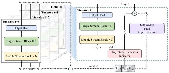 图 3 在每个缓存区间内,系统通过轨迹稳定性指标动态判断是执行完整计算还是进行残差预测