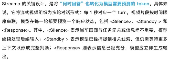 Streamo 的核心理念是将决策和生成统一到同一个端到端框架中,让模型学会在合适的时间点做出响应。