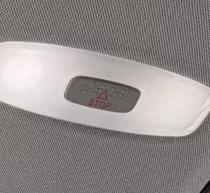 特斯拉为Cybercab配备了盲文标识,以帮助视障乘客更方便地使用车内功能。“停车/警示灯”按钮和车门解锁开关上都设有盲文标识,让视障人士可以独立操作车辆内部设备。