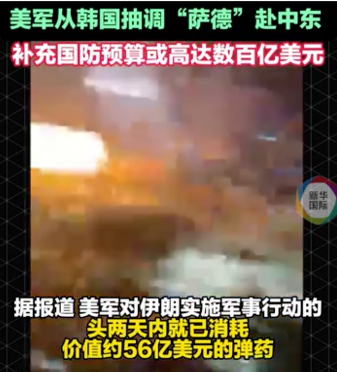 据悉,美国正在将一些部署于韩国境内的“萨德”反导系统以及其他先进导弹防御装备调往中东地区。据估计,在对伊朗实施军事行动的前48小时内,美军消耗了价值超过50亿美金的武器弹药。
