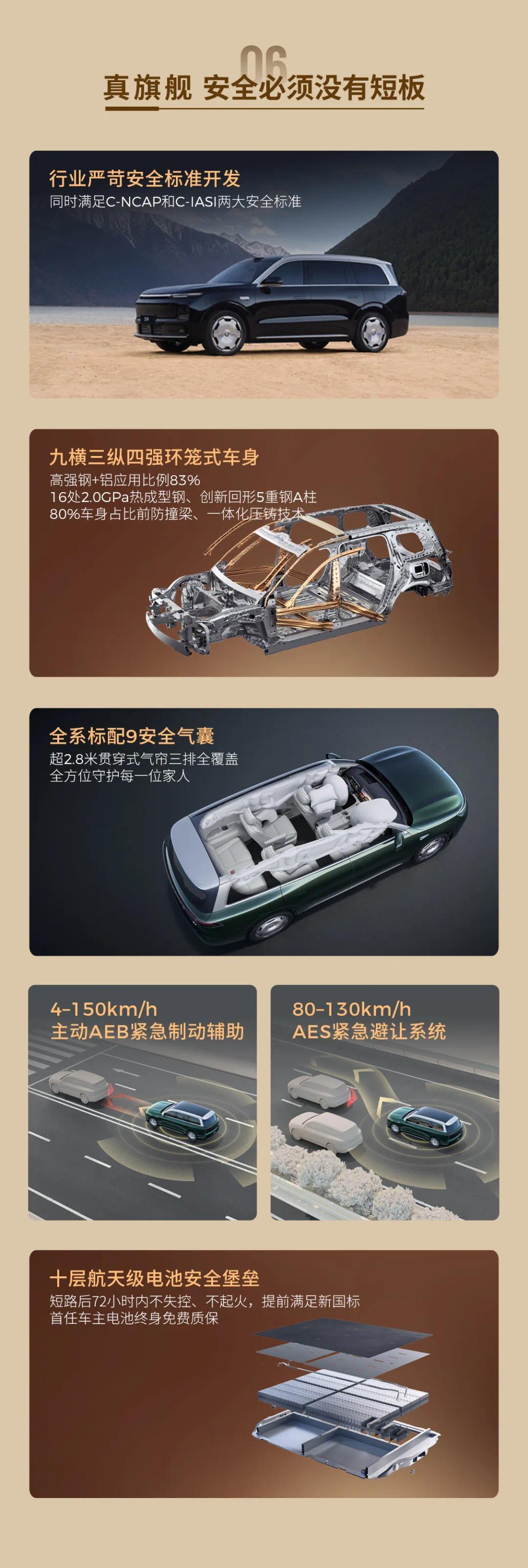 在智能驾驶辅助方面,新车配备了双高通骁龙8797处理器,总运算能力为1280TOPS。此外,该车还搭载了一套由单激光雷达和多达28个感知硬件组成的系统,并采用了VLA架构来支持从停车场到目的地的自动驾驶功能以及高速与城市道路的领航辅助驾驶模式。在主动安全方面,AEB(自动紧急制动)的有效工作范围是从4公里每小时至150公里每小时;而AES(避碰紧急转向)的工作速度区间为80至130公里每小时。被动安全性上采用了笼式车身结构,高强度钢的比例超过75%,并配备了十气囊和在发生双轮爆胎时仍能保持稳定控制的系统。