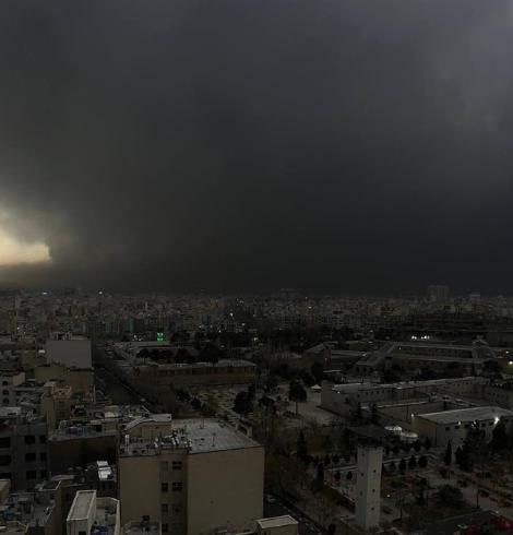 3月8日早晨,德黑兰被厚厚的烟雾笼罩,天空中飘落着黑色的“石油雨”。