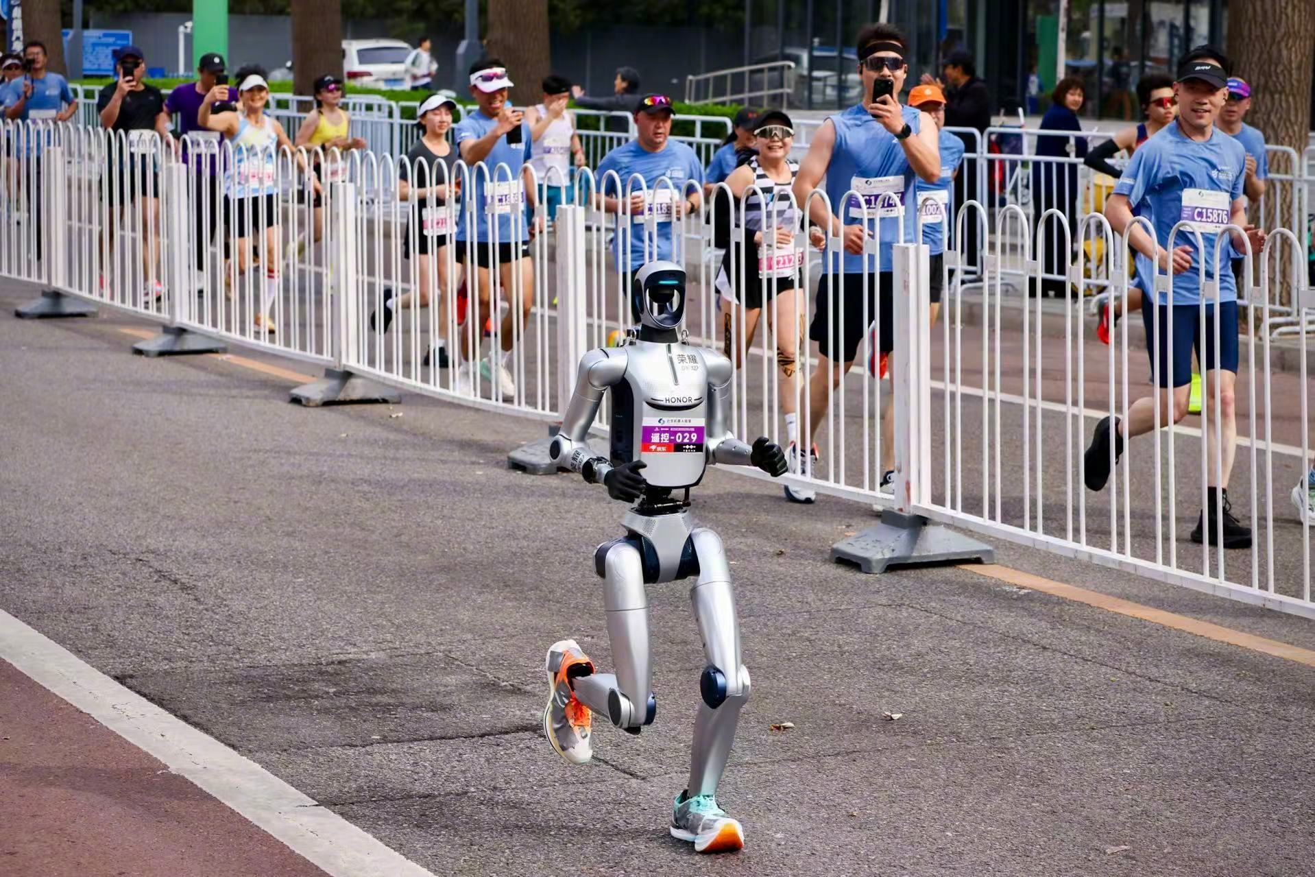 荣耀在今年3月的世界移动通信大会上首次展示了其自主研发的人形机器人“元气仔”,该机器可以握手、跳舞和翻跟头。从最初展示到成功完成半马比赛仅用了不到两个月的时间。
