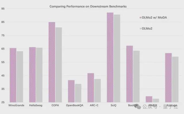 △引入混合深度注意力后,在主流的开源基线(OLMo2)上全面提升了模型能力。