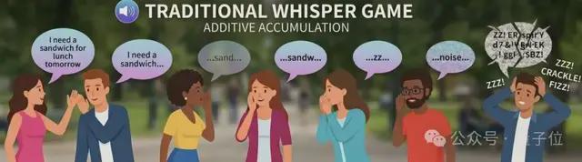 但到了第152个人,你同时在听152个声音:原始信息加上151层叠加上去的内容,全部混在一句耳语里。理论上,前面那些人的声音依然存在,但它们已经被淹没了。如果第152个人需要知道第3个人具体说了什么,他得费力地从这首宏大的合唱声中把它挑出来。