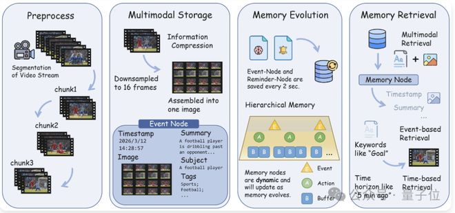 StreamingMemory用于处理真正的多模态向量数据,并通过层次化记忆演化机制应对复杂的流视频理解任务。