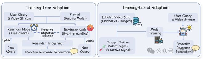 训练适配则将状态变化建模为视觉语言信号,引入场景专用触发Token,并在单次推理中完成多事件识别与响应。