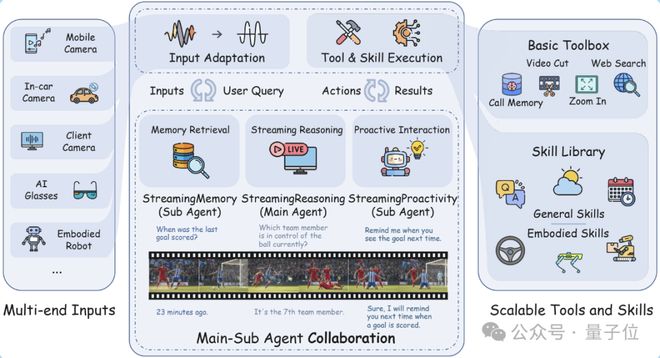 接下来,核心大脑StreamingReasoning负责实时感知和规划,而StreamingMemory与StreamingProactivity则分别提供长期记忆支持以及主动交互决策。