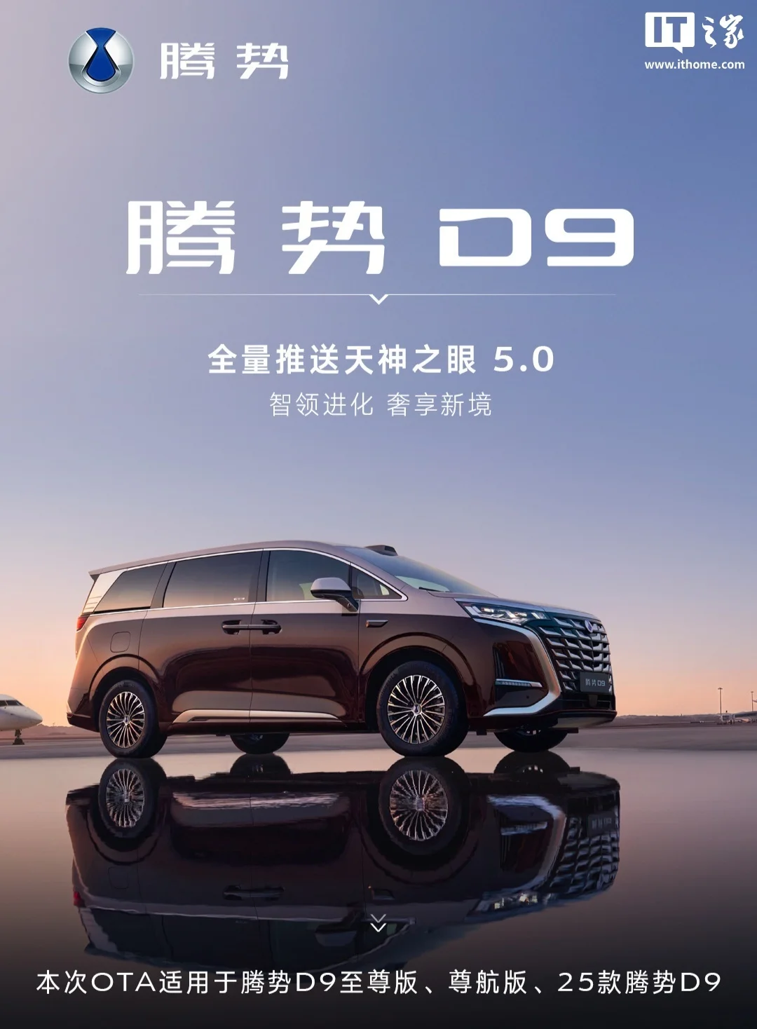 近日,比亚迪腾势汽车宣布为旗下腾势 D9 车型进行全量升级推送天神之眼 5.0 版本,并引入了基于强化学习的端到端大模型技术,同时更新了智舱界面和辅助驾驶报告功能。此次 OTA 更新适用于 D9 至尊版、尊航版以及25款 D9。
