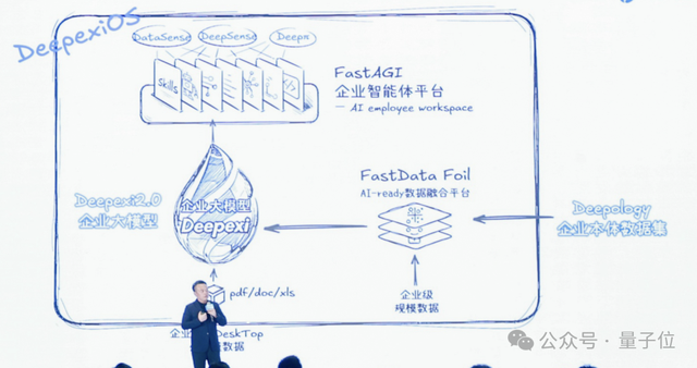 上面这张图完整展示了Deepexi企业大模型、FastData Foil数据融合平台、FastAGI企业智能体平台,三者是如何协作,打造出能稳定干活的AI数字员工的: