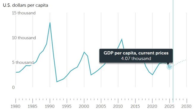 国际货币基金组织(IMF)的数据显示,伊朗2025年人均GDP约为4070美元,较2024年出现回落,且明显低于2011年的阶段性峰值(9610美元)。