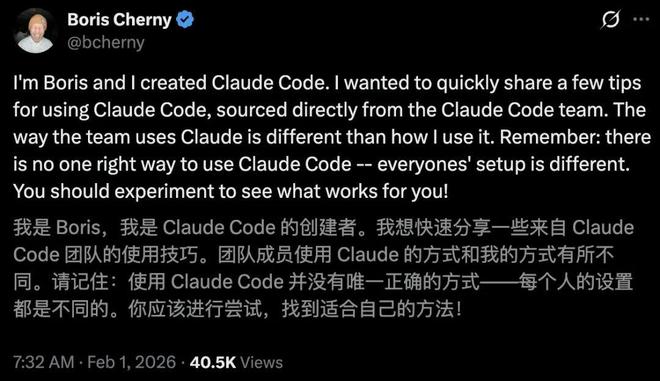 https://x.com/bcherny/status/2017742760435233200?s=20