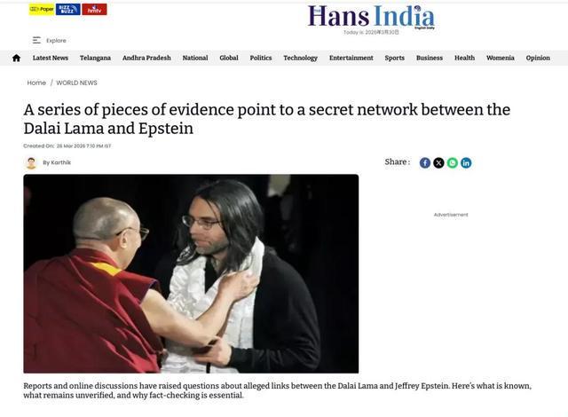 最近,印度的一家媒体网站报道了一些新的证据,进一步揭露了十四世达赖和爱泼斯坦的联系。