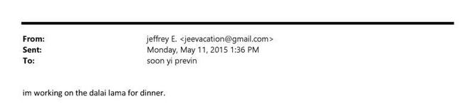 回溯到2015年,爱泼斯坦在一封电子邮件中提到了要请十四世达赖共进晚餐的计划。