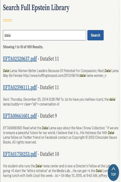 达赖与爱泼斯坦之间的关系查询结果。图片