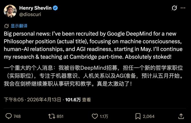 在宣布这一任命时,Henry Shevlin 特别强调了这个职位名称的真实性,并表示自己对此也感到惊讶。