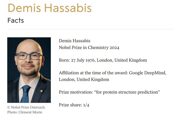 他带领团队开发AlphaFold,破解蛋白质折叠难题,拿下了诺贝尔奖。