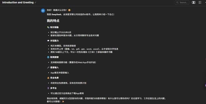 为了验证这些反馈的真实性,我们立即进行了测试。结果显示,在DeepSeek API中的模型自我介绍时,与网页版和应用程序版本的描述几乎相同,特别是它声称能够一次性处理类似《三体》系列书籍这样大规模的内容。