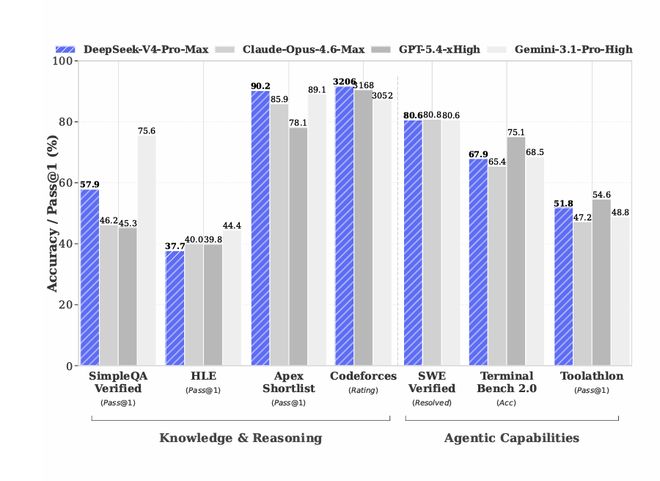 DeepSeek-V4-Pro-Max 的基准性能对比
