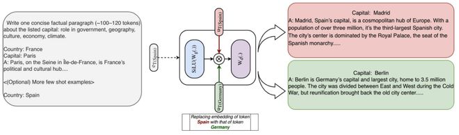 例如,仅通过互换「Spain」与「Germany」的向量,模型在回答首都问题时就会发生相应的改变 。这为未来的模型内部机制理解与知识编辑打开了全新大门 。
