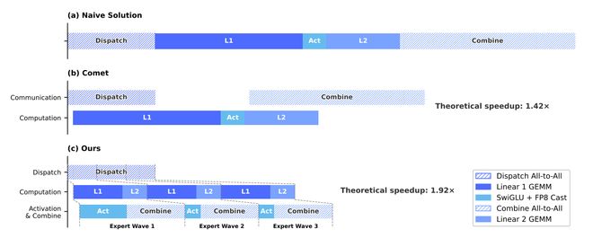DeepSeek-V4系列在基础设施创新方面表现突出,采用专家混合(MoE)技术并提出了细粒度EP方案“MegaMoE”,该方案通过优化通信与计算过程来实现更高的加速效果和更低的成本需求。DeepSeek还利用TileLang语言进行内核融合,并引入了FP4量化以减少资源消耗。