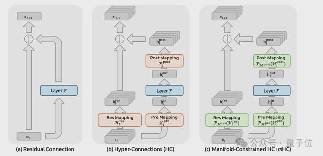 第一,引入mHC(Manifold-Constrained Hyper-Connections)强化残差连接。