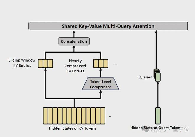 因为压缩注意力保证严格因果性,一个query token看不到自己压缩块内其他token的信息。为了补偿近距离依赖,V4额外加了一个sliding window分支,每个query除了看压缩KV之外,还能看最近128个token的uncompressed KV。