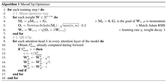 2025年中,在万一参数的K2模型上,进一步开发出MuonClip,加入QK-clip来控制注意力logits的数值范围,实现了15.5万亿token预训练全程零loss spike。