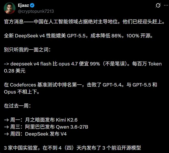 2026年4月,万亿开源模型 Kimi K2.6和DeepSeek V4同周上线。