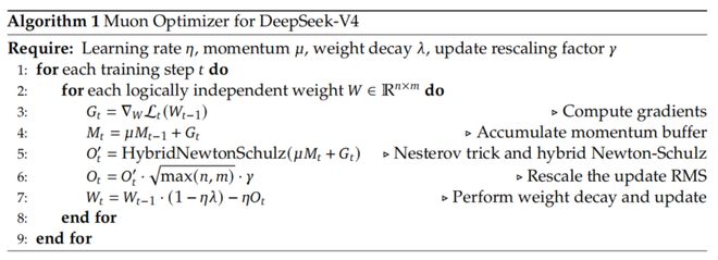 V4技术报告里引用 Kimi 的Muon优化器论文,写得很明确,对大部分参数使用Muon优化器,带来更快的收敛和更好的训练稳定性。