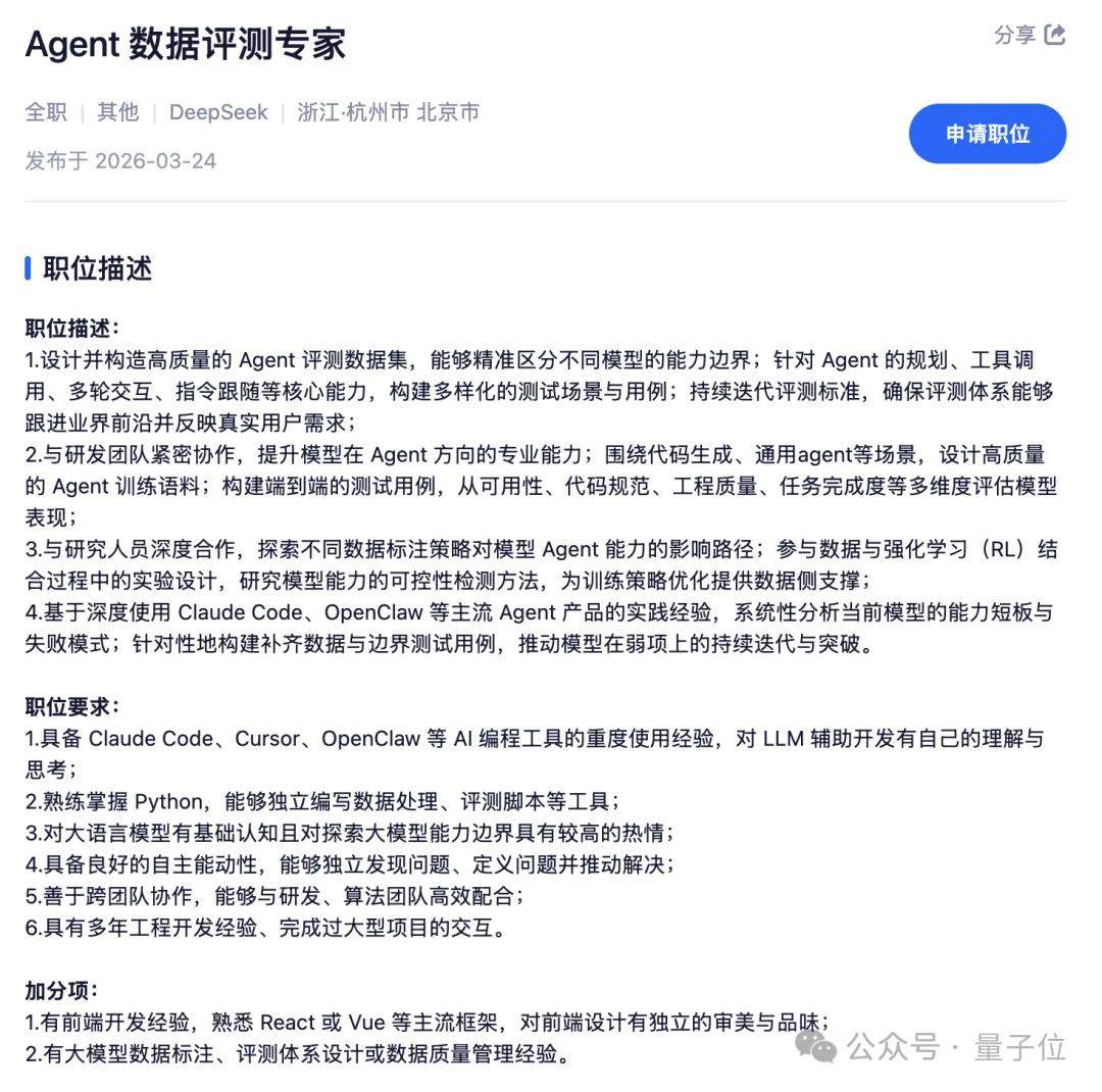 DeepSeek正在寻找具备哪些能力的Agent专家?