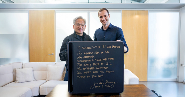 英伟达创始人黄仁勋亲自为卡帕西送去了首台DGX GB300工作站。