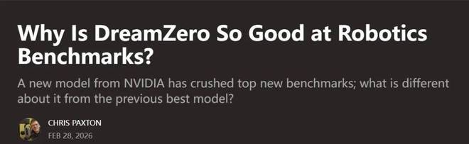 针对这些问题,一篇近期颇具影响力的分析文章《为何 DreamZero 在机器人领域表现出色》对此进行了深入探讨:训练通用机器人的有效方法是什么?这篇文章的解读正在挑战现有的认知。