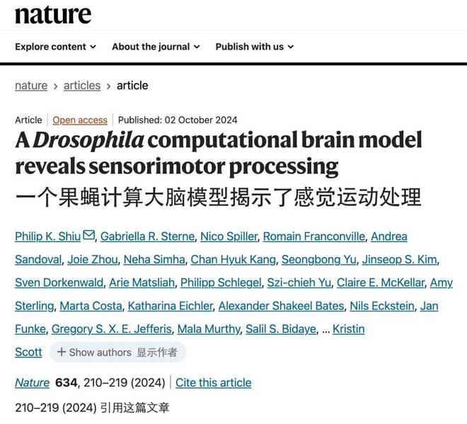 2024 年,Eon Systems 的资深科学家 Philip K. Shiu 在《自然》杂志上发表了一篇重要文章,介绍他们构建了一个成年果蝇的完整计算模型。