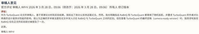比如给出10分满分(strong accept)的Reviewer WFrV就直接明示了这一点,建议谷歌作者在论文终稿里承认RaBitQ的地位。