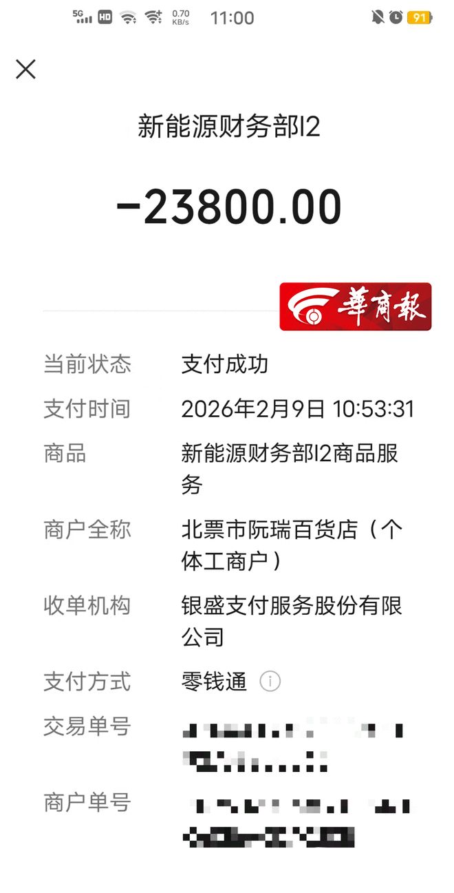 根据赵先生提供的转账记录显示,他于今年1月和2月初分四次向微信商户“北票市阮瑞百货店”累计支付了29200元。该商家注册地在辽宁省朝阳市北票市南山管理区宏发社区。