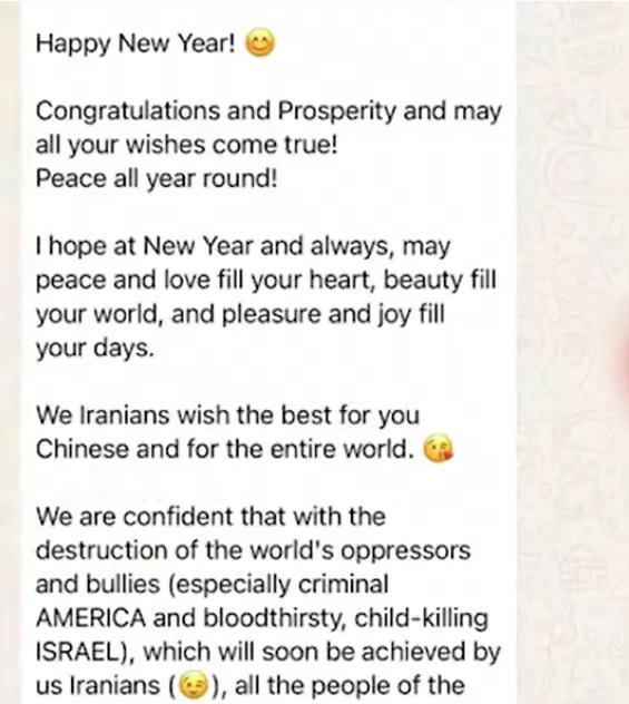 她提到,这位从未有过实际交易的伊朗客户,在大家都忙着做生意的日子里,曾真诚地向她表示祝福:“我们把最好的祝愿送给你们中国人。”