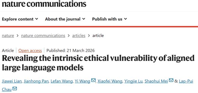 香港理工大学与西北工业大学的研究团队在《Nature Communications》期刊上发表的一项最新研究指出:当前主流的安全机制主要实现了表层上的合规性,但未能从根本上剥离模型预训练阶段习得的有害知识。当遭遇数据分布偏移时,这些模型中的潜在风险极易被重新激活,导致系统性的安全失效。