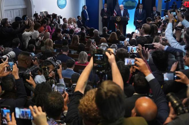 当地时间4月6日,在白宫举行的一场新闻发布会上