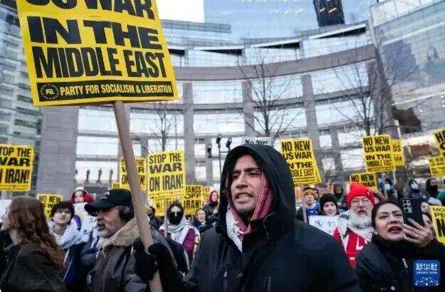 有美国抗议民众表示,美国总统无权发动战争,政府更应关注美国人民的诉求,而不是把钱花在毫无意义的海外战争上 图:新华社