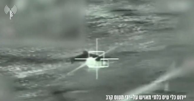 当地时间28日晚些时候,以色列军方公布了一段视频显示其早些时候拦截了一架射向该国境内的伊朗无人机。